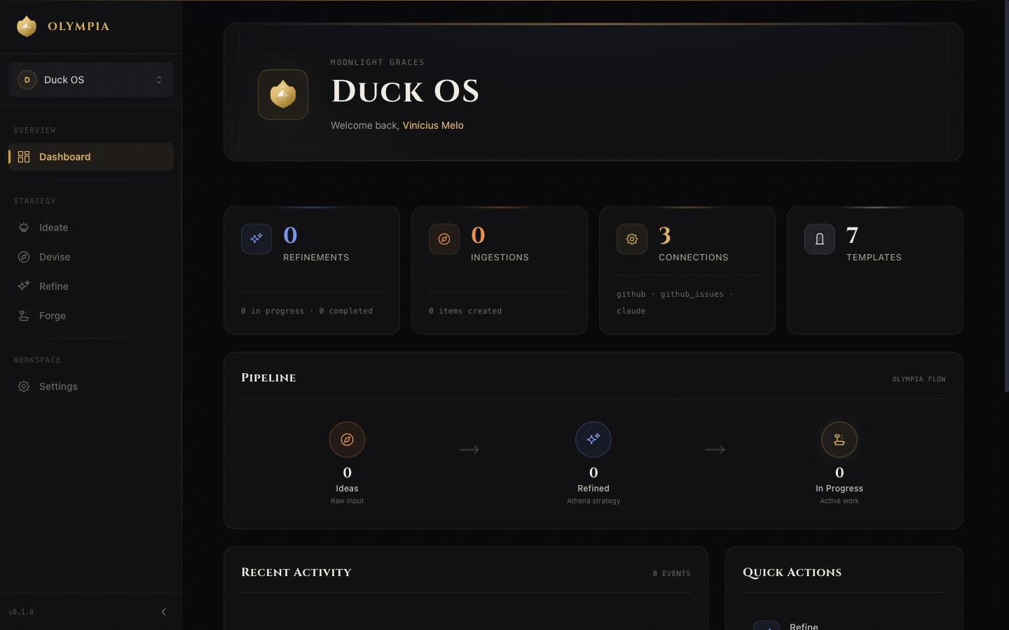 Pipeline unificado para desenvolvimento com IA — planejamento com Athena, execução com Vulcan e interface web integrada para orquestração de agentes. Projeto próprio, em produção.